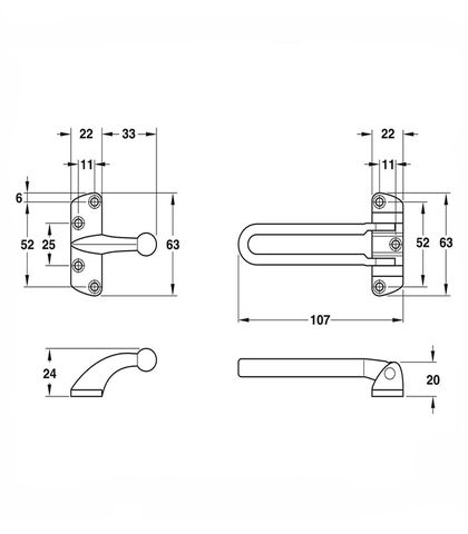 - Chốt an toàn cho cửa dạng gài