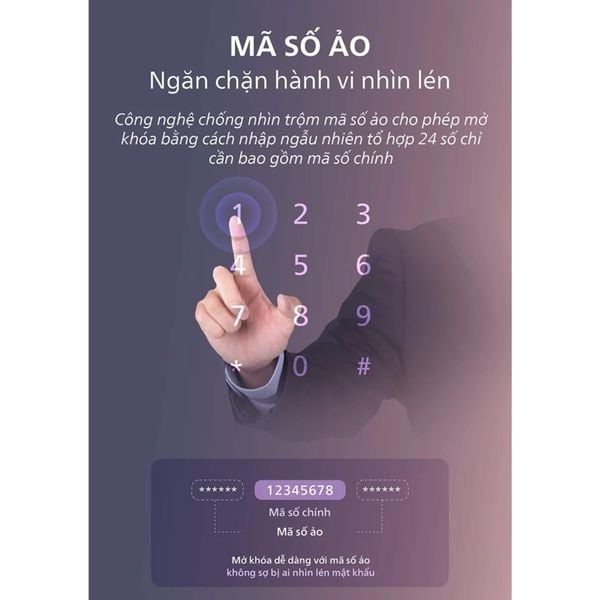 Kết hợp với tính năng mã số ảo (Anti-Peeping), người dùng có thể nhập thêm các số ngẫu nhiên trước hoặc sau mã thật, giúp tránh bị nhìn lén và rò rỉ mật khẩu.