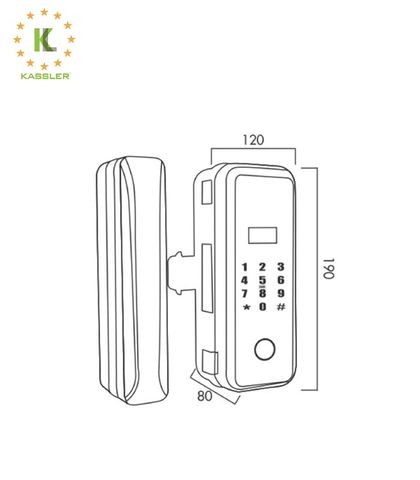 + Kích thước thân khóa ngoài: R 120 x C 190 x D 80 mm