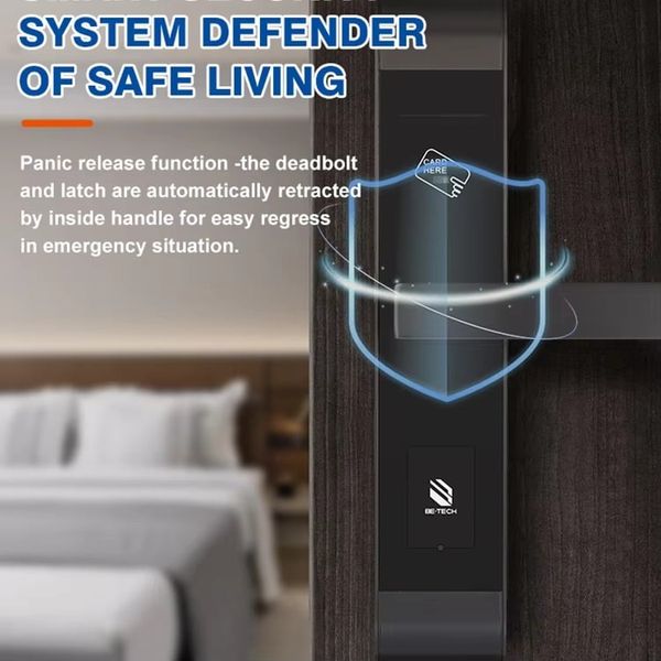 Be-Tech V7 sử dụng công nghệ RFID không tiếp xúc giúp mở khóa nhanh chóng, an toàn và tiện lợi, không cần cắm thẻ vào khe như các dòng khóa từ truyền thống.